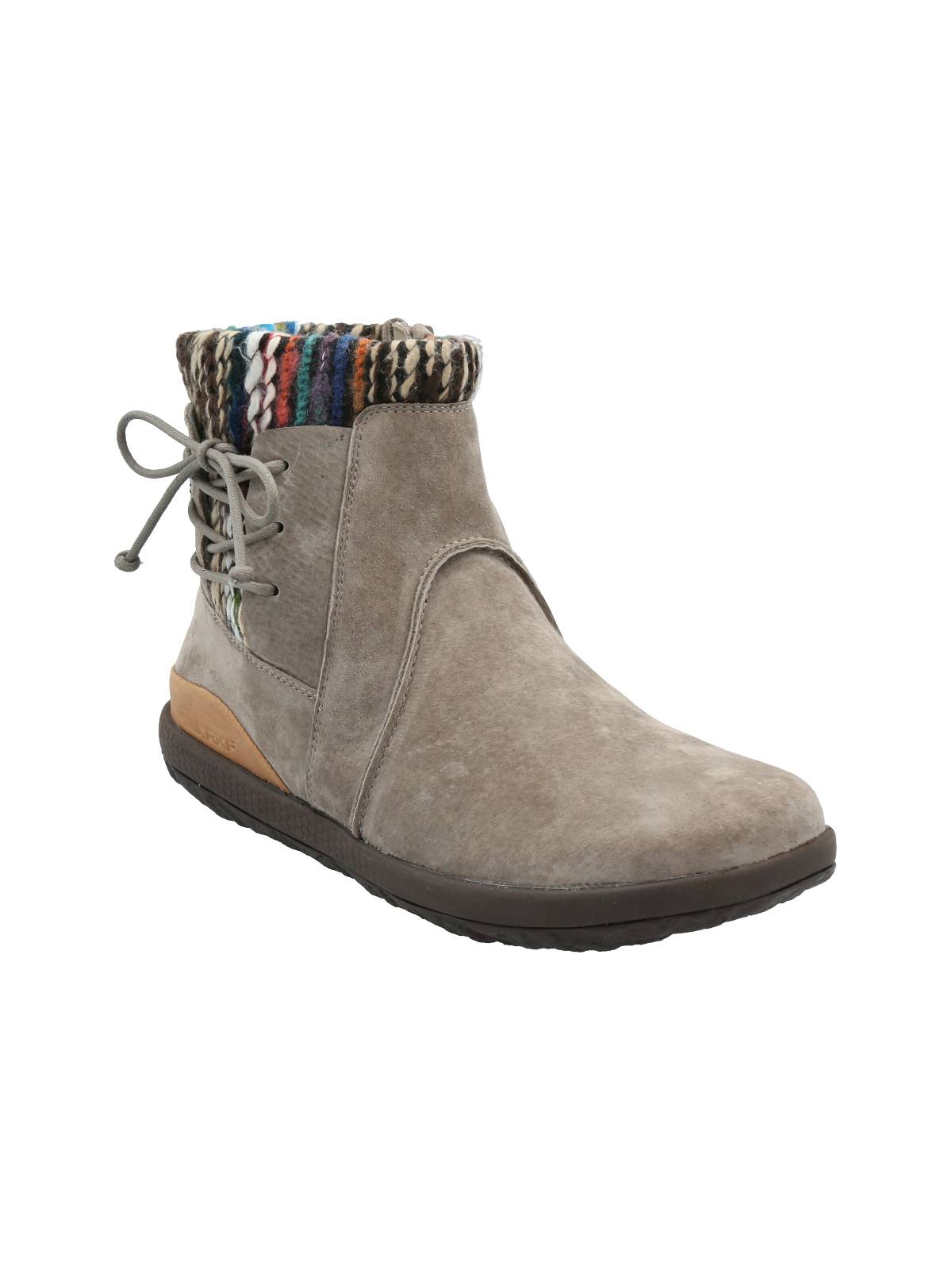 Botín Cusia II de cuero con detalle de textil en el cuello y lengueta. Su planta de goma con tecnología Honey Foam, inspirada en trenzados rústicos, es liviana y permite un buen agarre al caminar. Este modelo RKF de estilo casual se adapta de manera confortable en un entorno natural.