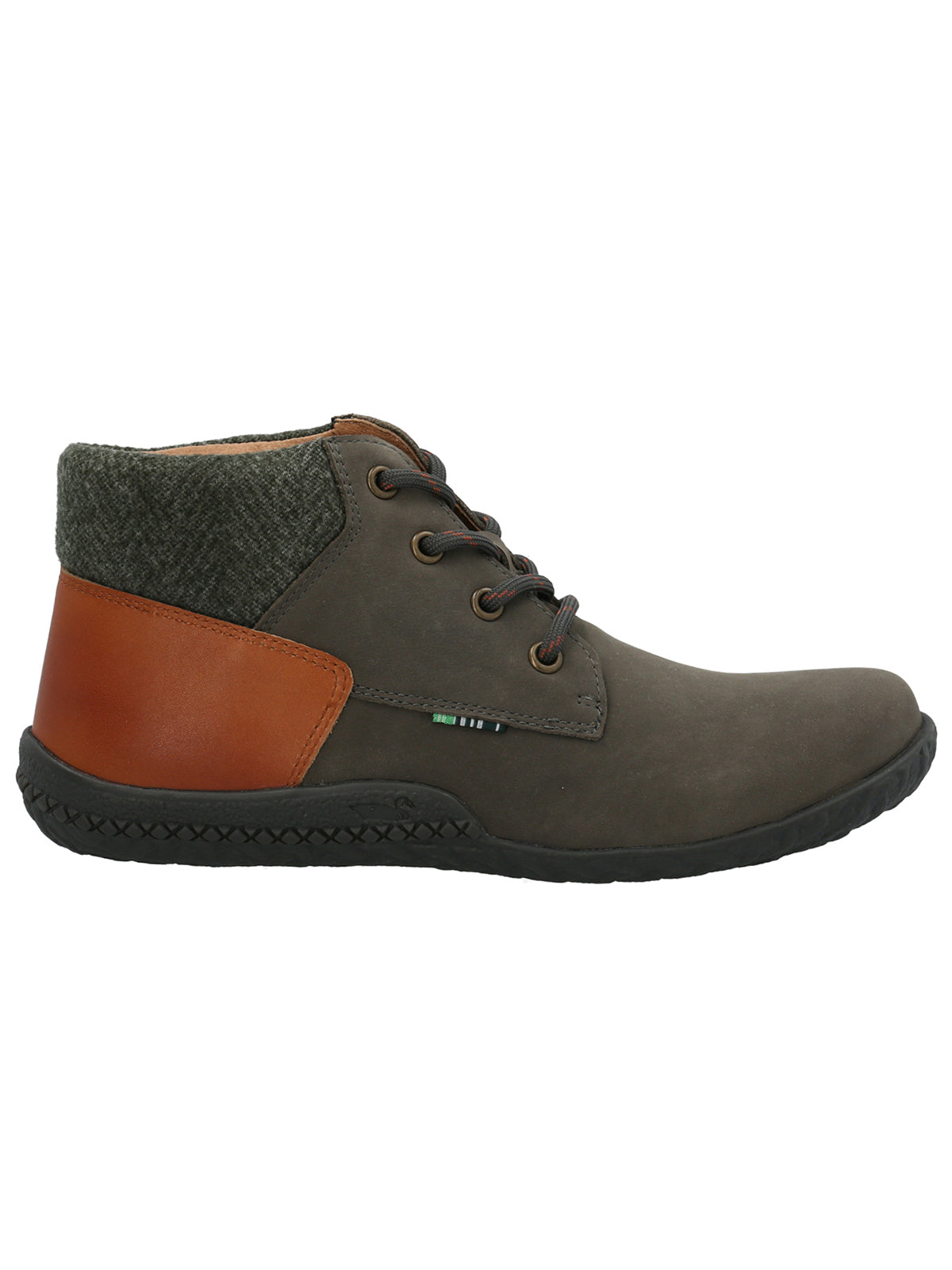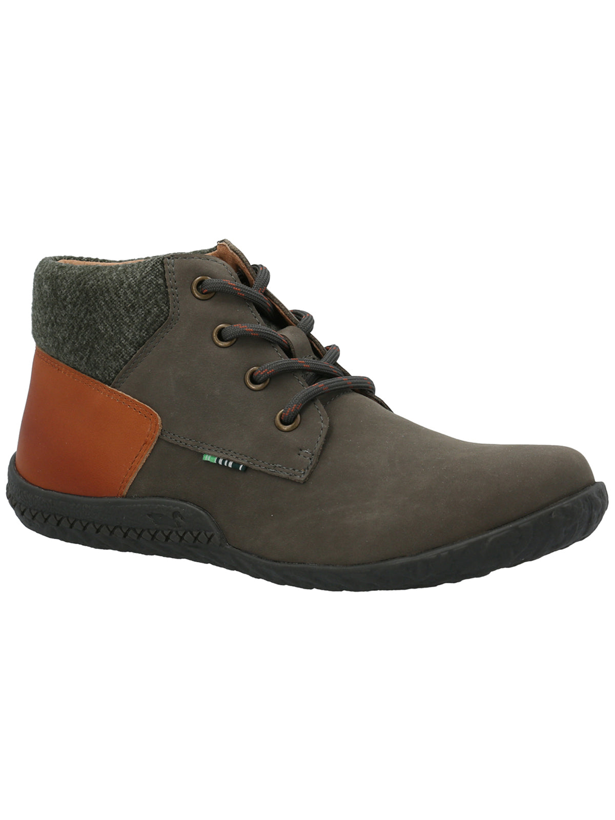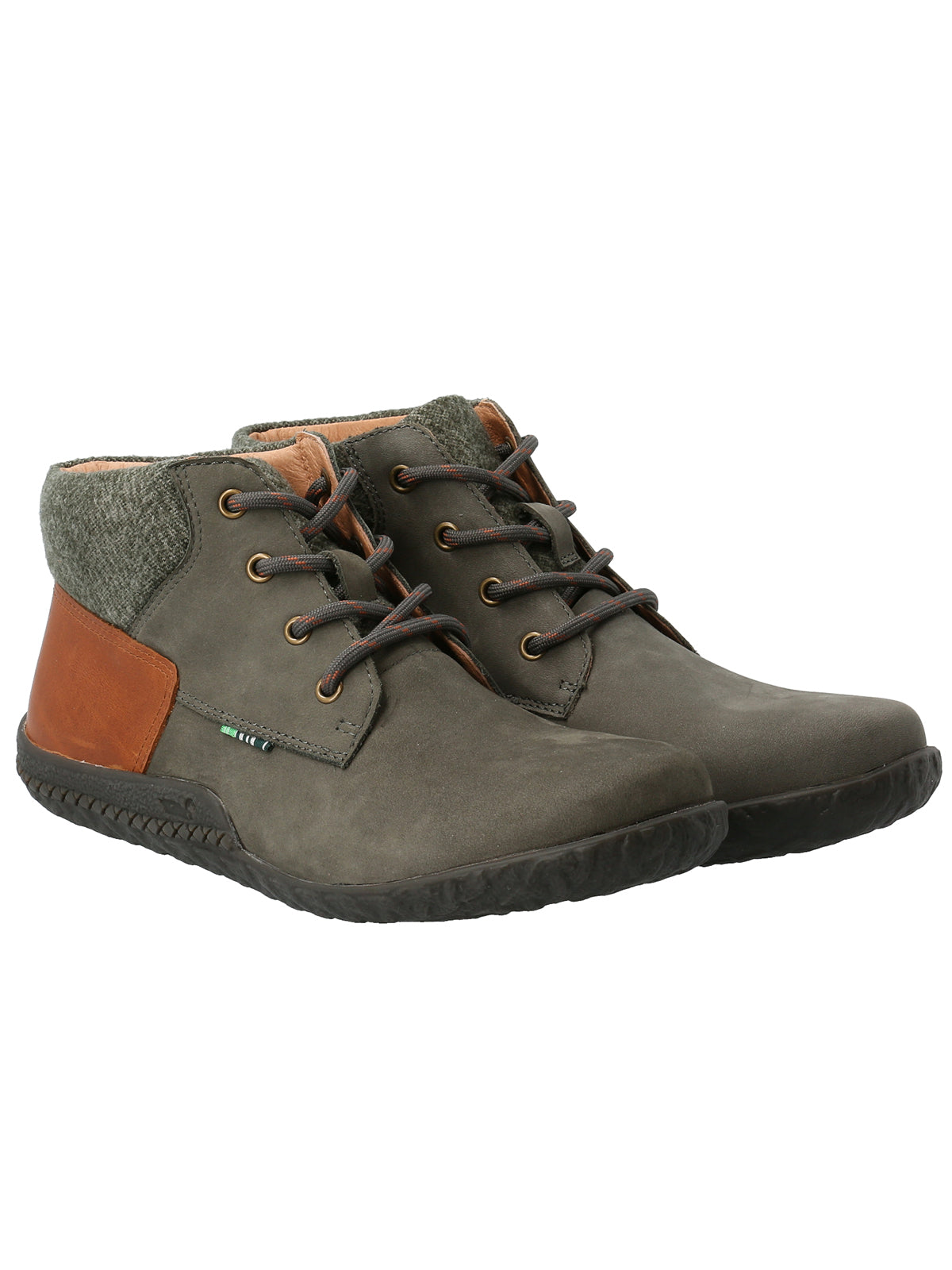 Botín de cuero con detalle de textil en el cuello y lengueta. Su planta de goma, inspirada en trenzados rústicos, es liviana y permite un buen agarre al caminar. Este modelo RKF de estilo casual se adapta de manera confortable en un entono natural.