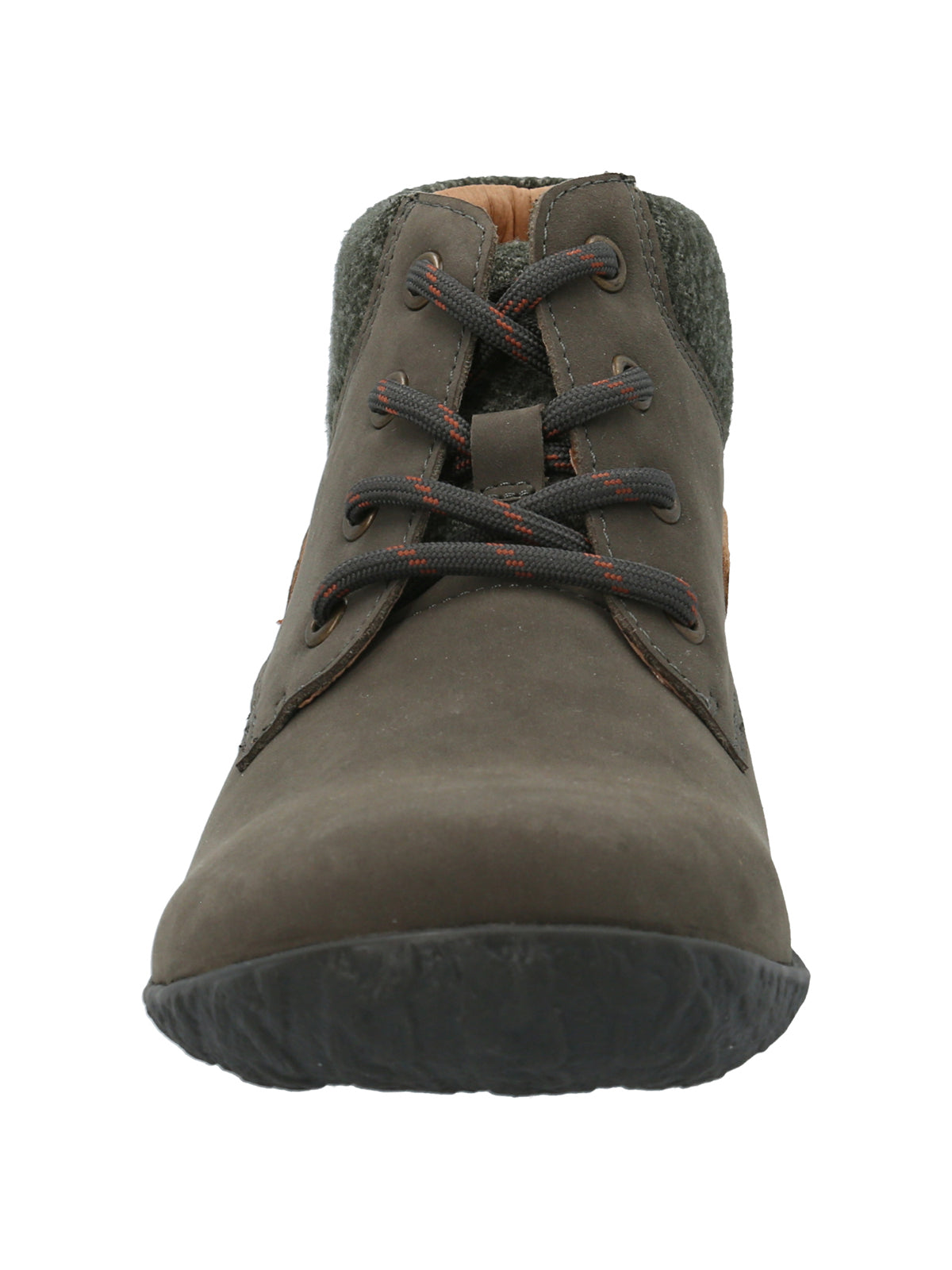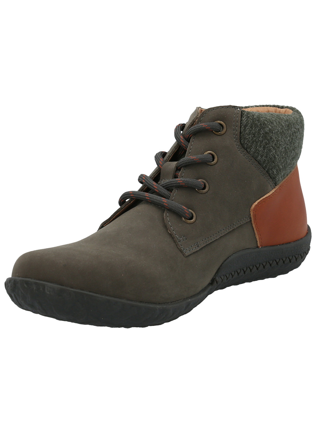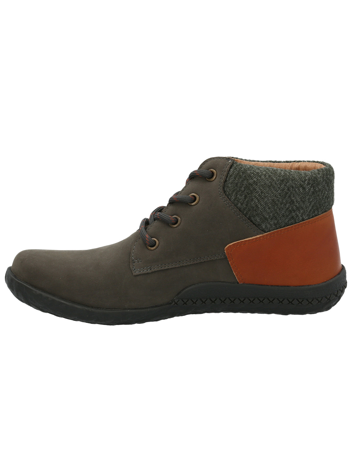 Botín de cuero con detalle de textil en el cuello y lengueta. Su planta de goma, inspirada en trenzados rústicos, es liviana y permite un buen agarre al caminar. Este modelo RKF de estilo casual se adapta de manera confortable en un entono natural.