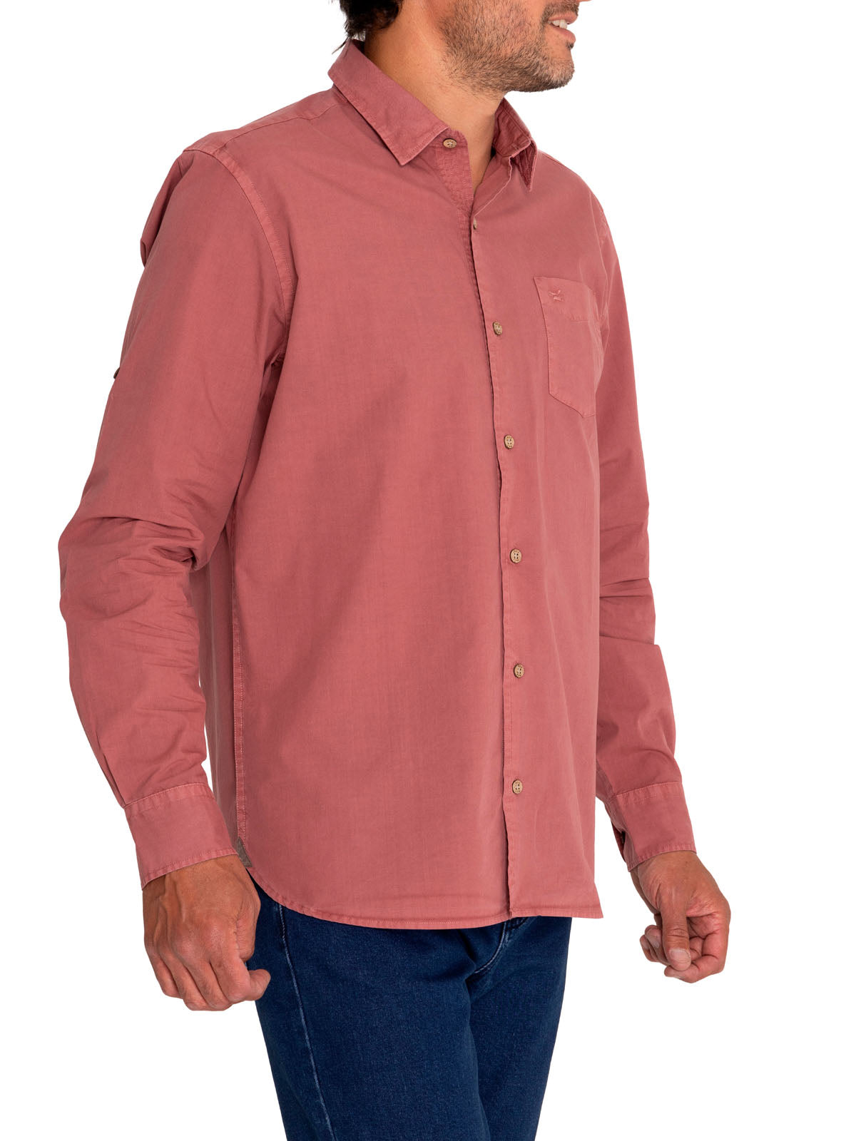 Descubre nuestra nueva camisa, teñida en prenda para un look vintage y único para cada prenda. Detalles distintivos incluyen bolsillo en el pecho con logo bordado y manga ajustable con botón. Fabricada en popelina 100% Algodón Orgánico, su terminación de ruedo redondeada busca un estilo casual, ideal para llevar fuera del pantalón. Descubre la autenticidad y el encanto exclusivo en cada detalle.