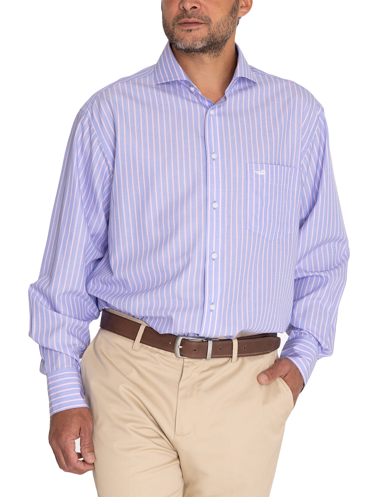 Camisa Libre De Arrugas Hombre WF Cuello Italiano Azul Rockford