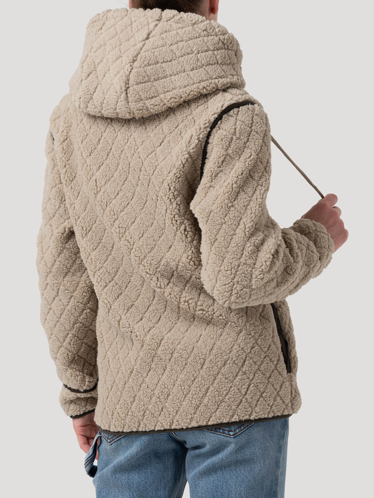 La Polar Pilosis está confeccionada con poliéster reciclado y presenta un diseño acolchado en rombos que combina abrigo, estilo y durabilidad. Los bolsillos laterales con terminaciones y aplicaciones de cuero aportan un acabado rústico y natural y el cordón con detalles en cuero refuerzan su estética outdoor. Su interior suave y su estructura ligera la convierten en una prenda ideal para acompañarte en caminatas, viajes o días fríos con total comodidad.