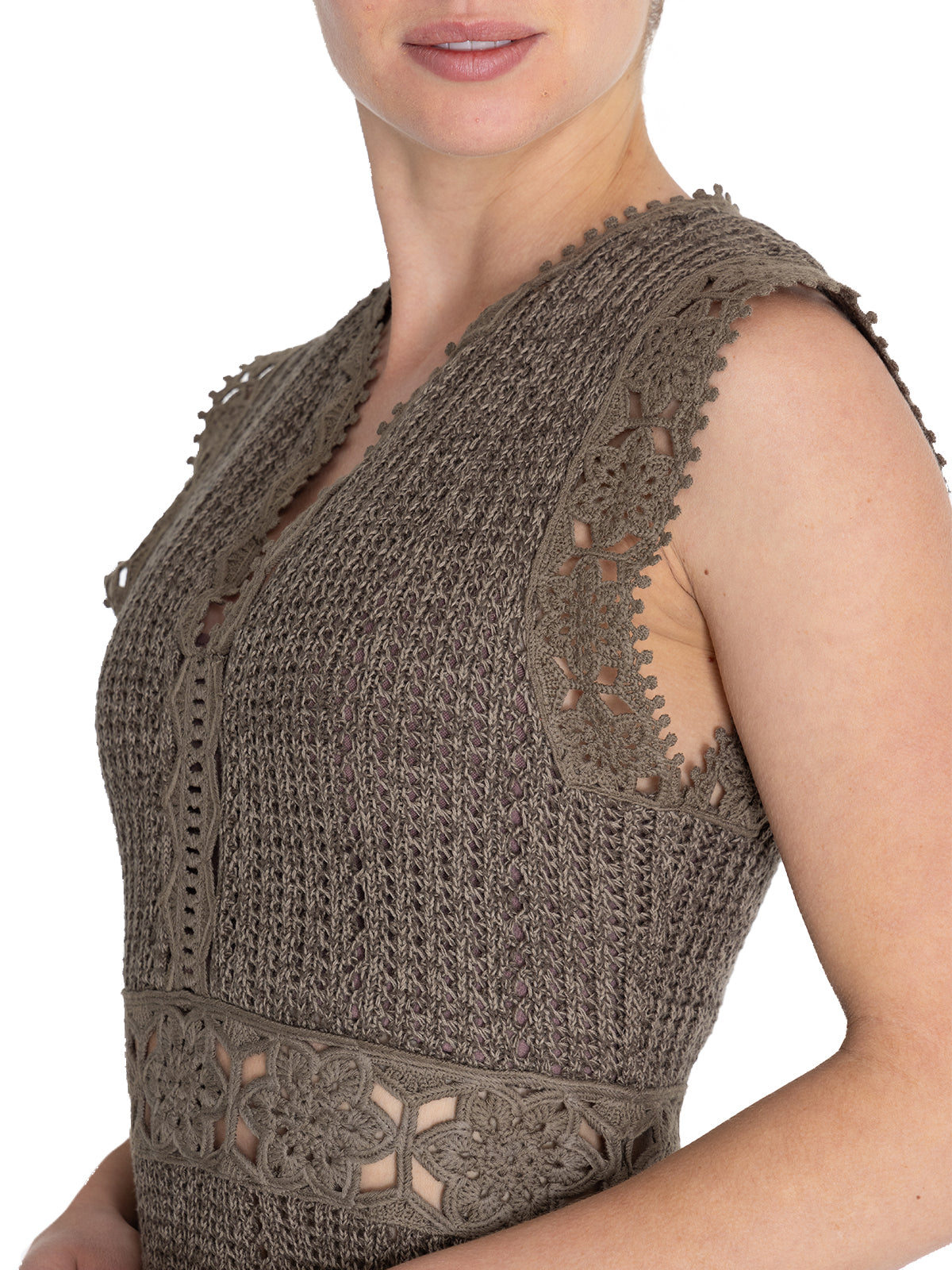 Vestido Lito tejido estilo crochet con escote en V detalles en brazos cintura y ruedo ideal para la playa y mujeres amantes de la naturaleza. Confeccionado con algodón orgánico este refleja nuestro compromiso con la sostenibilidad y el estilo al aire libre. El Algodón Orgánico es una fibra vegetal 100% natural suave transpirable e hipoalergénica.