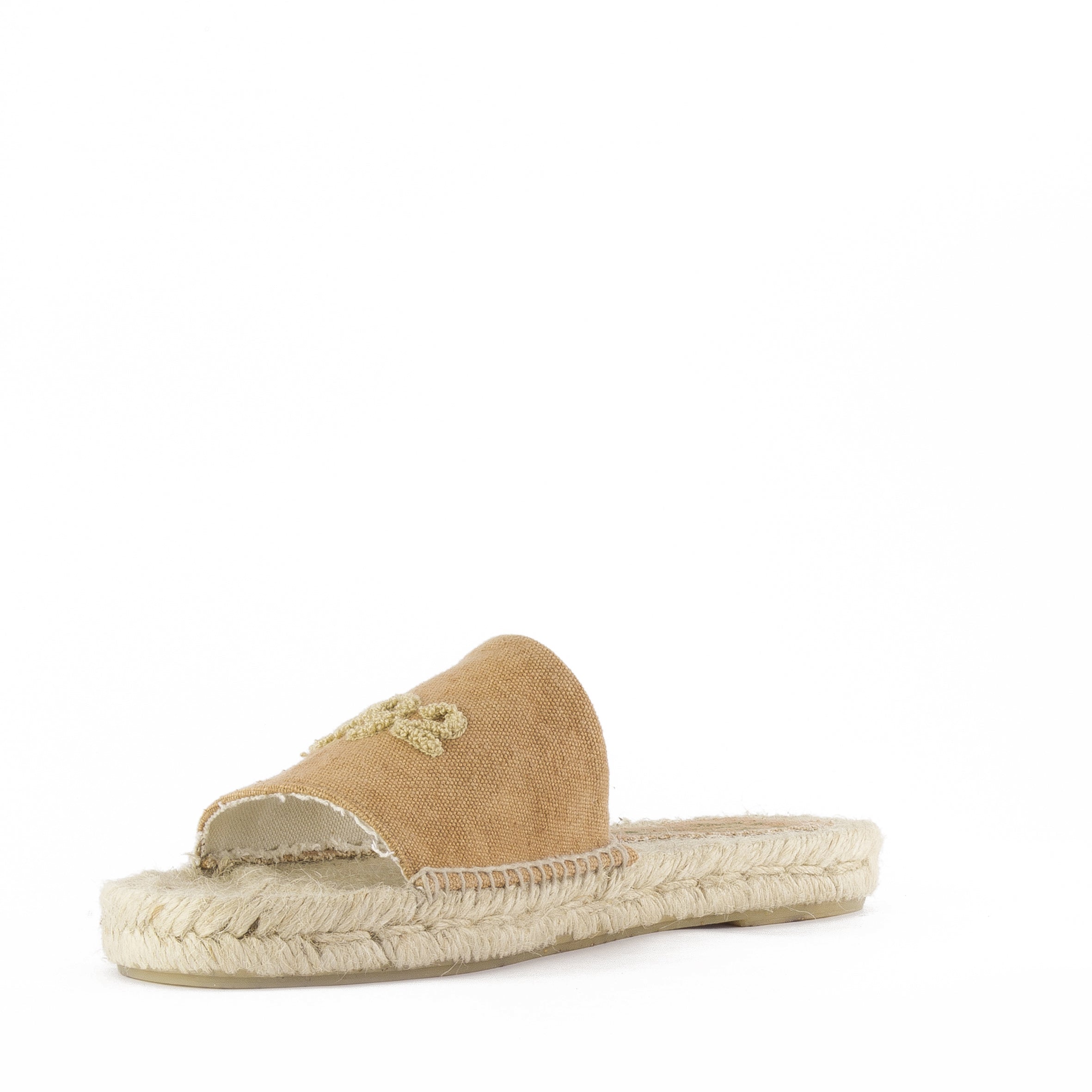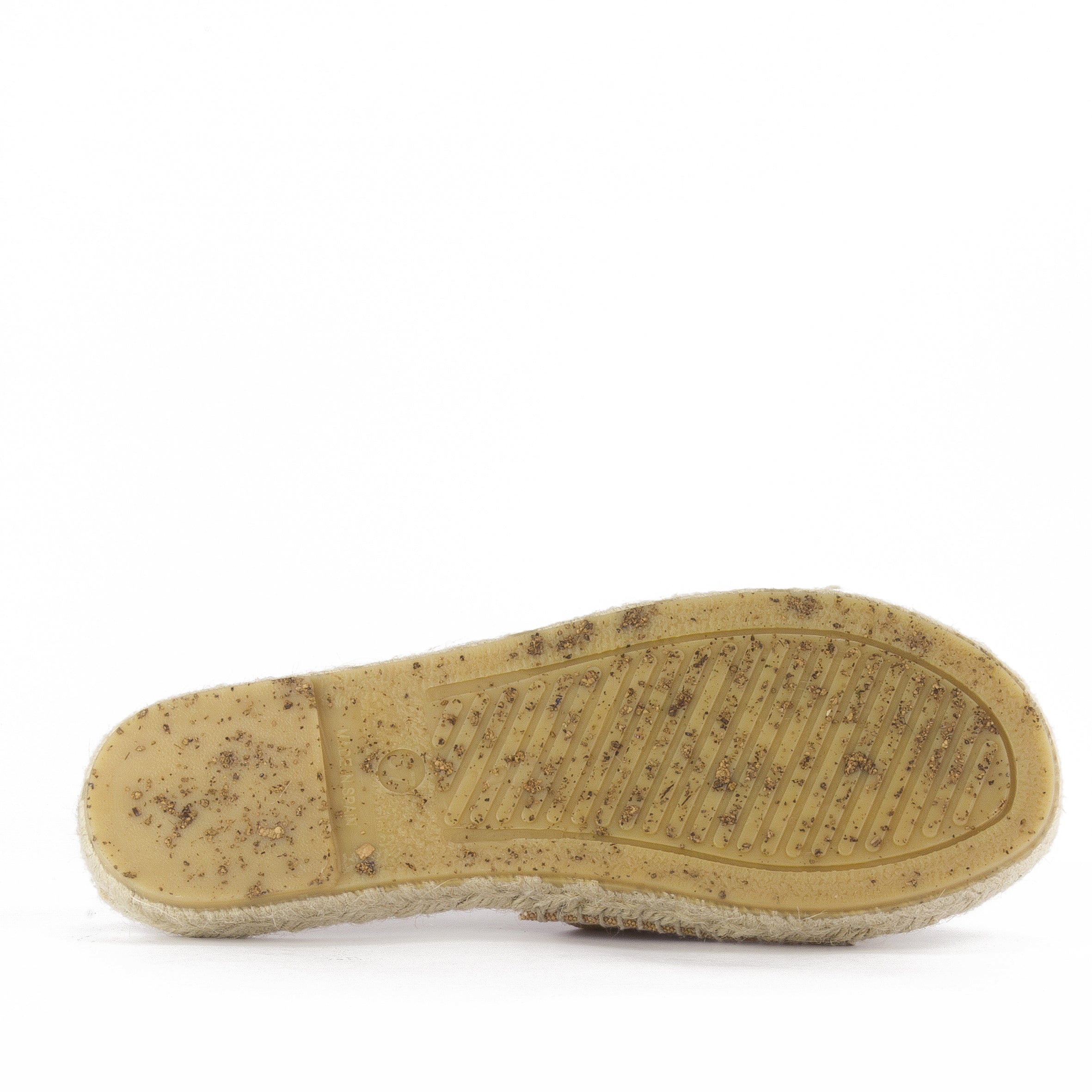 Sandalia española de algodón orgánico. Planta de yute con una suela de goma con trozos de corcho, lo que hace de un producto sustentable.