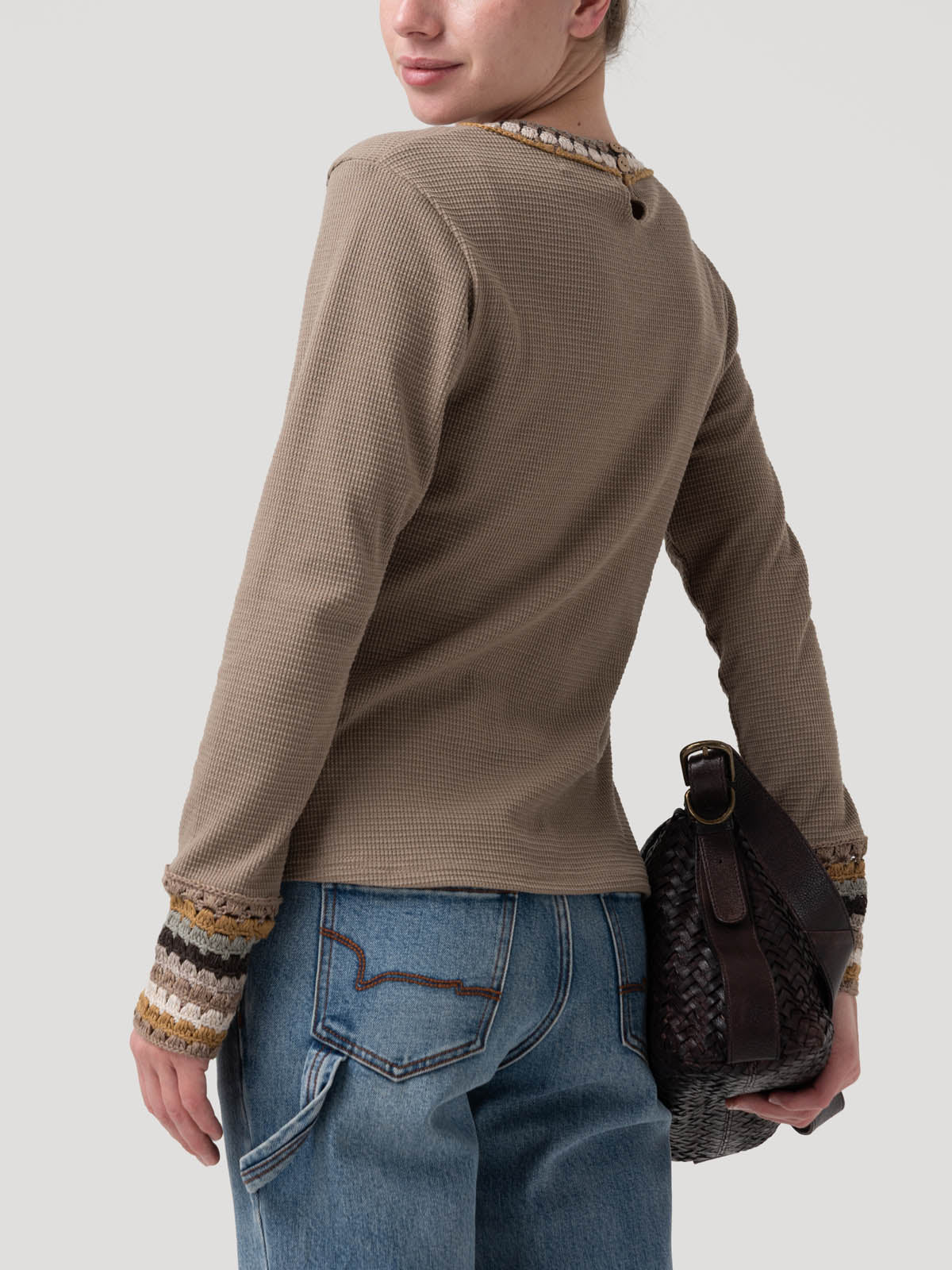 La Polera Pine combina comodidad, suavidad y un diseño lleno de detalles artesanales. Su cuello y puños incorporan crochet tejido, una técnica que aporta textura y un toque distintivo a la prenda. Estos acentos de color y diseño generan un contraste elegante que realza la silueta y convierten esta polera en una pieza especial dentro del clóset. Gracias a su mezcla de algodón orgánico, poliéster y spandex, la Pine ofrece elasticidad, durabilidad y una sensación cómoda durante todo el día.