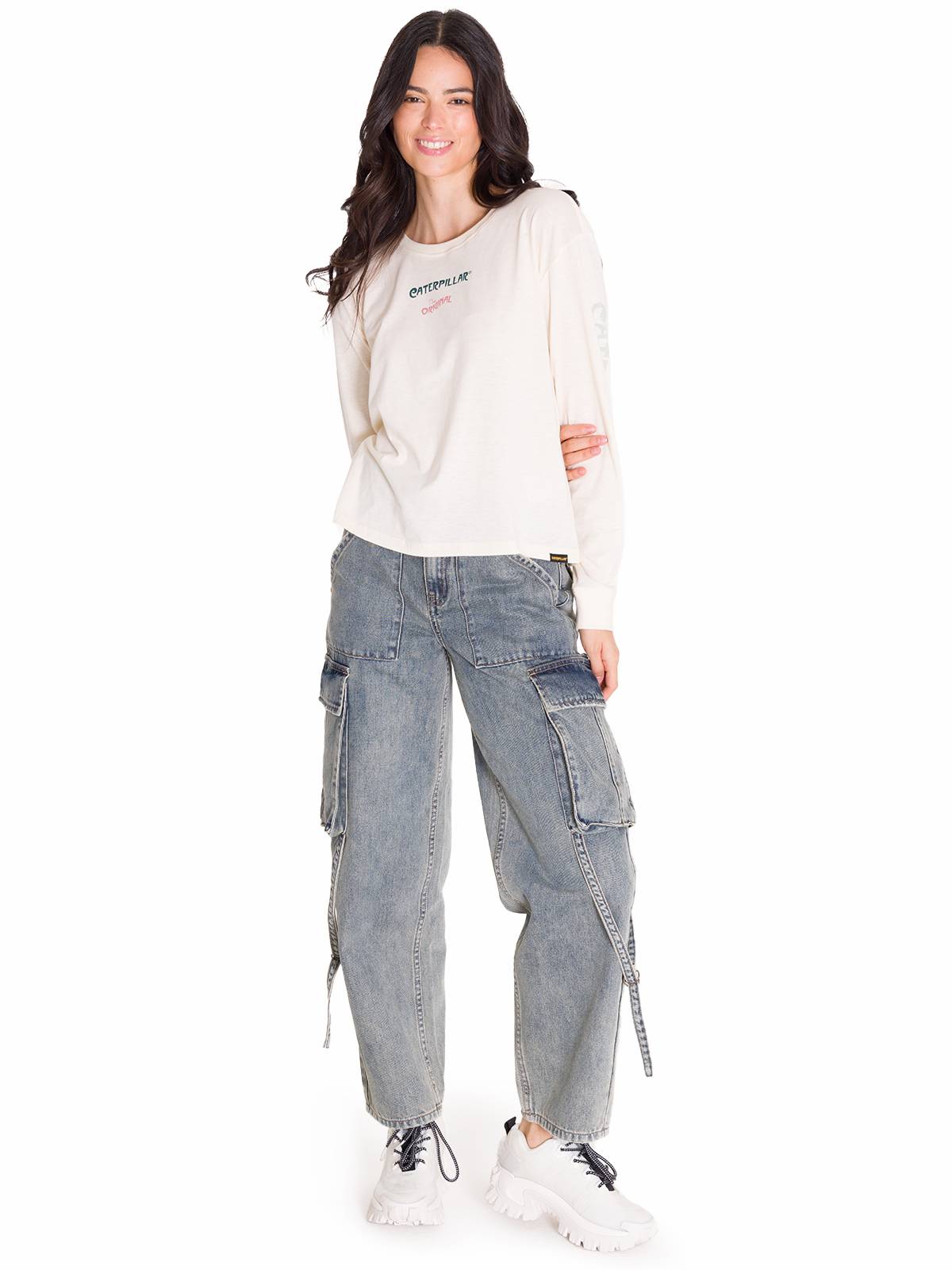 - Etiqueta envolvente con el logotipo de Caterpillar en el dobladillo, Gráfica impresa en el pecho, las mangas y la espalda